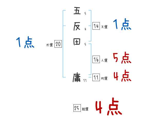 五反田庸さんの画数の鑑定結果