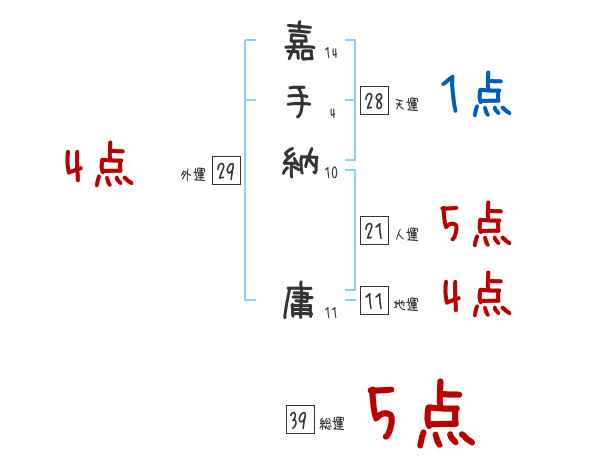 嘉手納庸さんの画数の鑑定結果