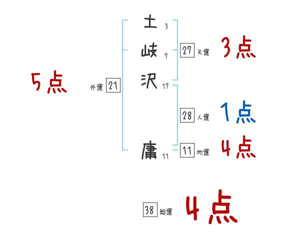 土岐沢庸さんの画数の鑑定結果
