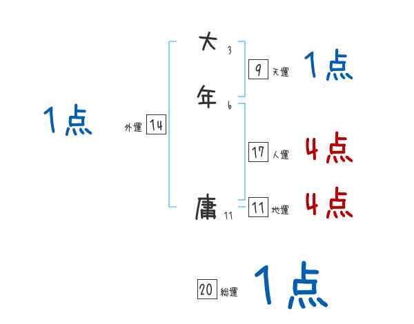 大年庸さんの画数の鑑定結果