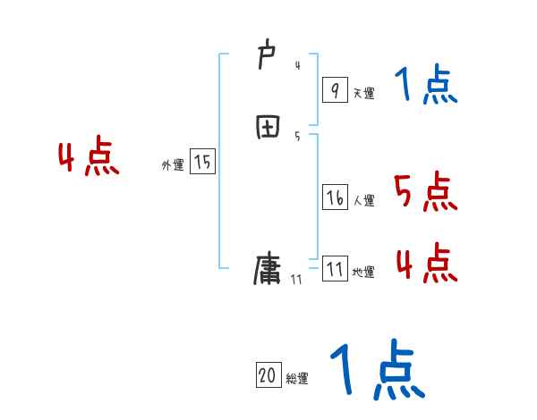 人運![]() | 戸田庸さんの人運は16画の5つ星!人望が厚く大きく発展する。逆転成功が見える。 性格や才能などを表す2番目に重要な運勢です。人間関係や協調性、社会的な成功に影響します。主に20歳から50歳ぐらいまでの中年期の運勢を表します。 |