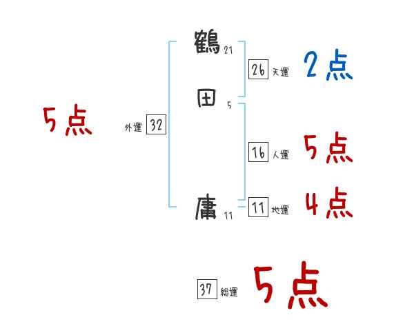鶴田庸さんの画数の鑑定結果