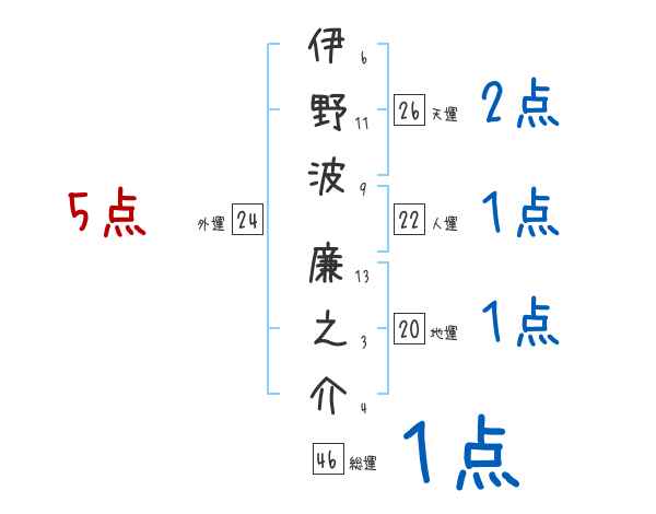 総運![]() | 伊野波廉之介さんの総運は46画の1つ星!迷走することが多く苦労するかも。目先のことにとらわれないように。 あなたの人生を表す1番重要な運勢です。生涯を通じて影響する総合運となり、主に50歳以降の晩年期に影響を及ぼします。 |