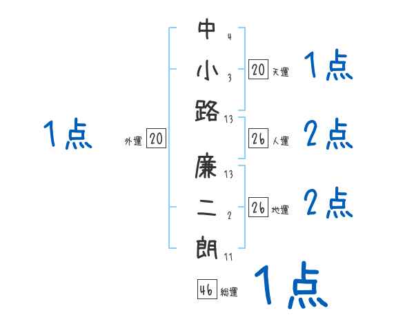 中小路廉二朗さんの画数の鑑定結果
