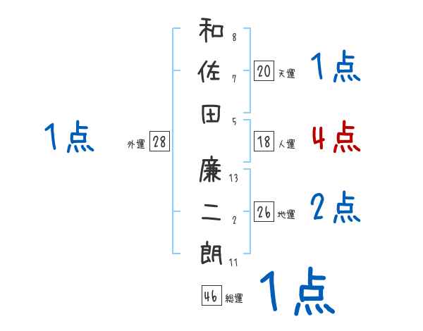 和佐田廉二朗さんの画数の鑑定結果