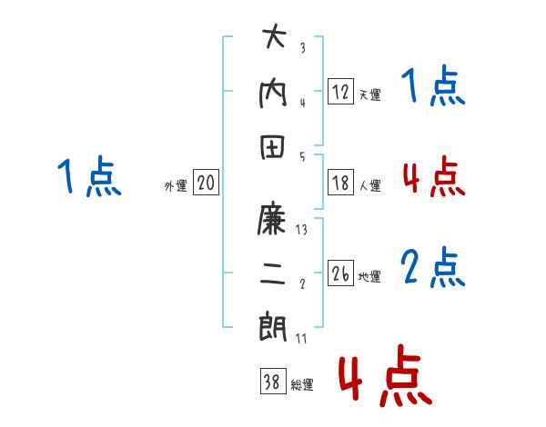 大内田廉二朗さんの画数の鑑定結果