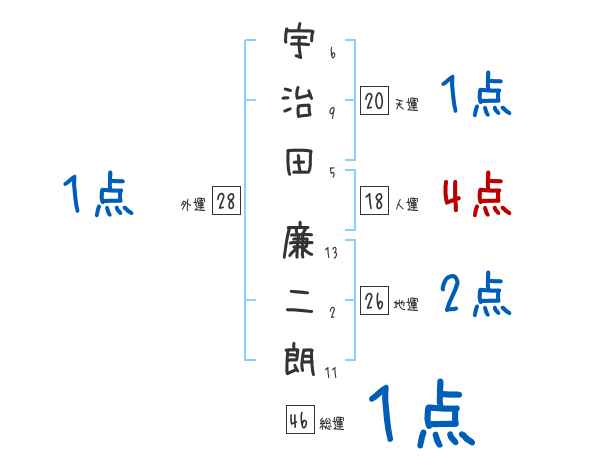 宇治田廉二朗さんの画数の鑑定結果