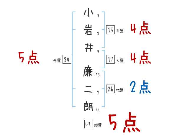 小岩井廉二朗さんの画数の鑑定結果