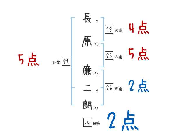 長原廉二朗さんの画数の鑑定結果