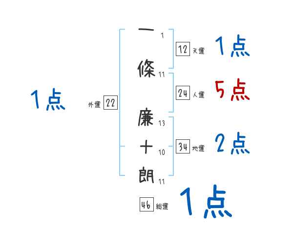 一條廉十朗さんの画数の鑑定結果