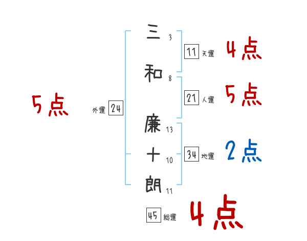 三和廉十朗さんの画数の鑑定結果
