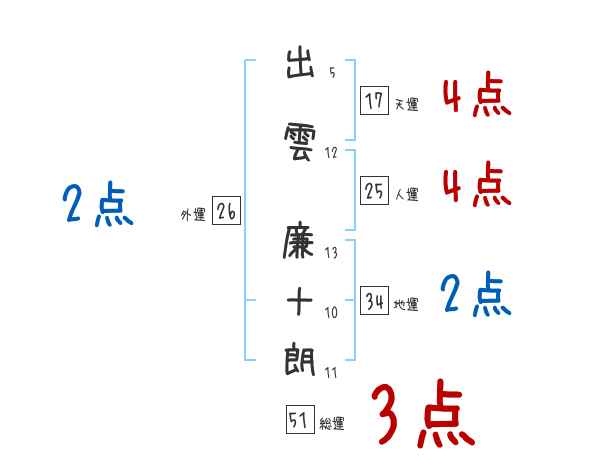 出雲廉十朗さんの画数の鑑定結果