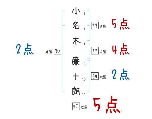 小名木廉十朗さんの画数の鑑定結果