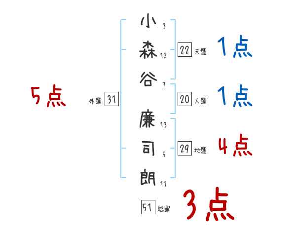 小森谷廉司朗さんの画数の鑑定結果