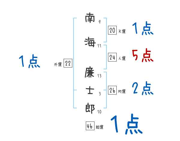南海廉士郎さんの画数の鑑定結果