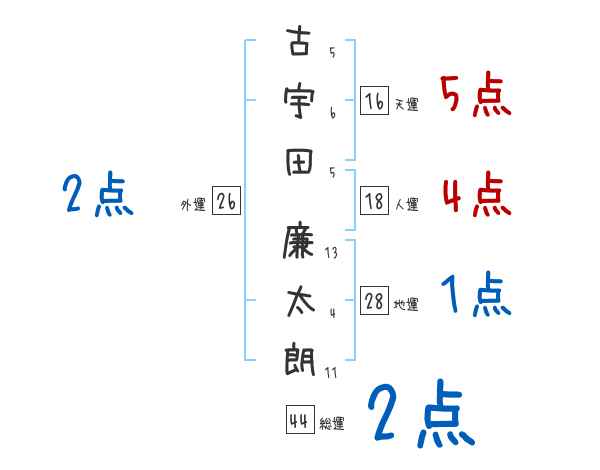 古宇田廉太朗さんの画数の鑑定結果