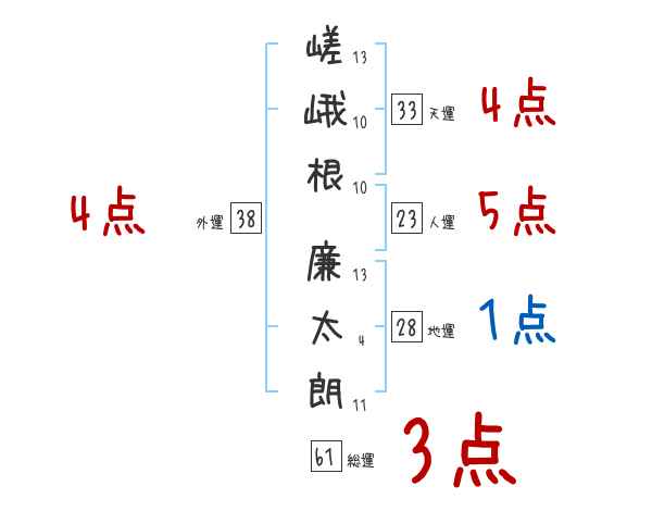 嵯峨根廉太朗さんの画数の鑑定結果