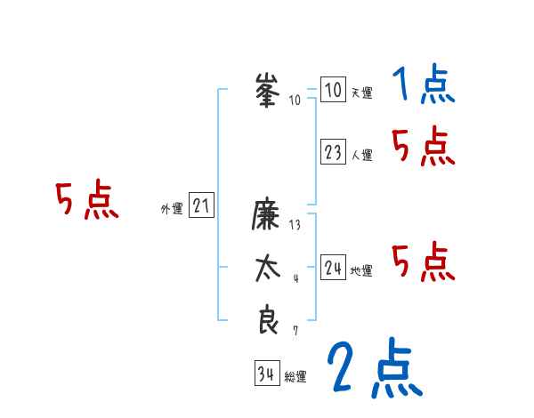 峯廉太良さんの画数の鑑定結果