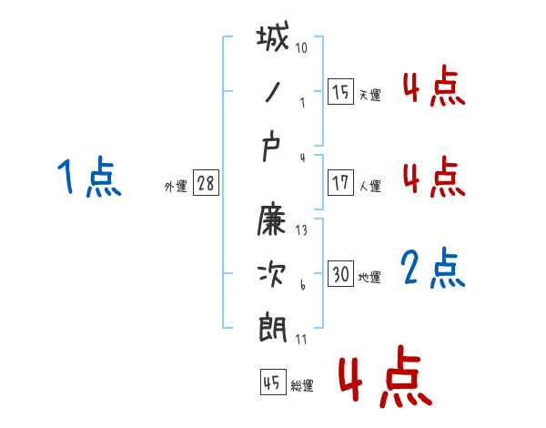 城ノ戸廉次朗さんの外運は28画の1つ星