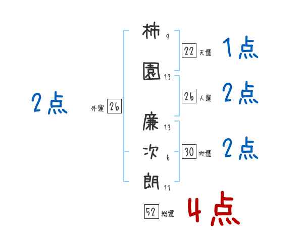 柿園廉次朗さんの画数の鑑定結果