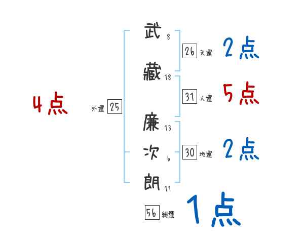 武藏廉次朗さんの画数の鑑定結果