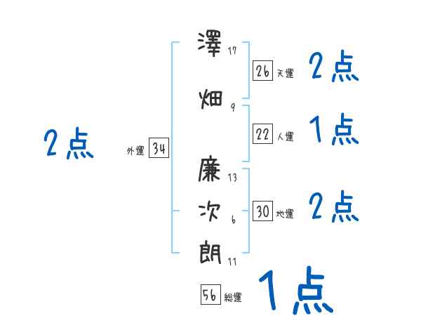 澤畑廉次朗さんの画数の鑑定結果