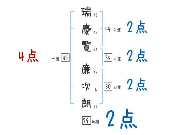 瑞慶覧廉次朗さんの画数の鑑定結果