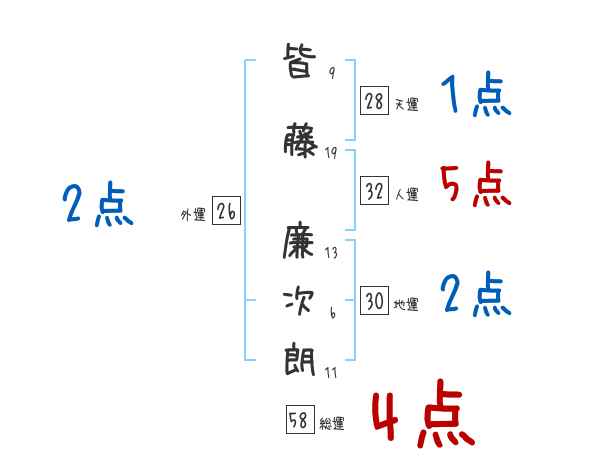 皆藤廉次朗さんの画数の鑑定結果