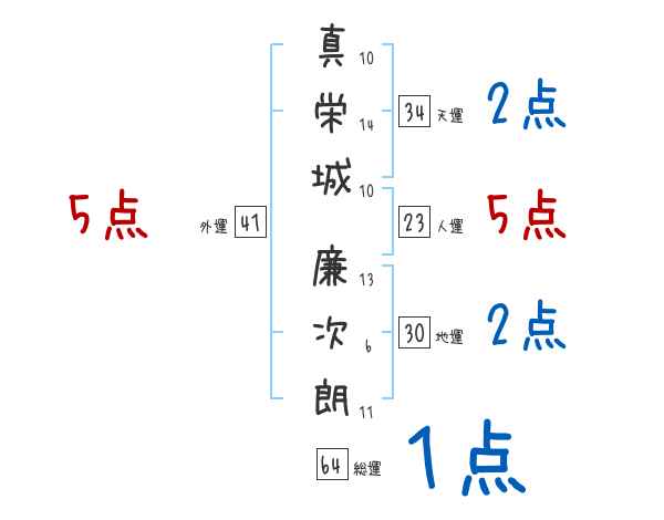 真栄城廉次朗さんの画数の鑑定結果