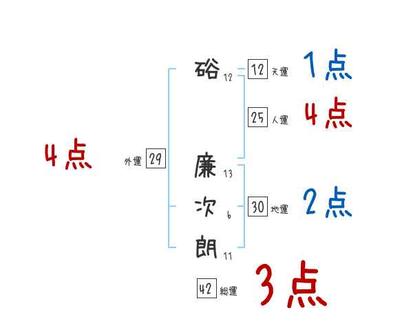 総運![]() | 硲廉次朗さんの総運は42画の3つ星!病気に注意。多芸であるが消極的でおとなしい。 あなたの人生を表す1番重要な運勢です。生涯を通じて影響する総合運となり、主に50歳以降の晩年期に影響を及ぼします。 |