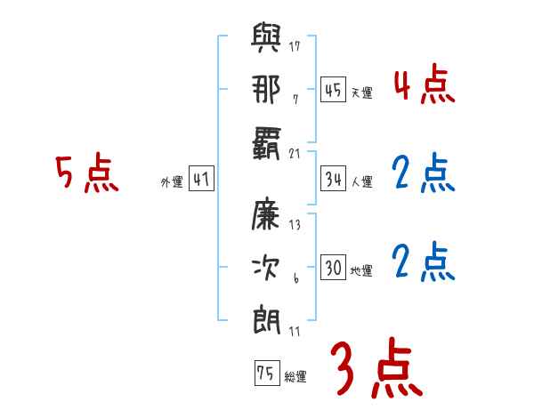 與那覇廉次朗さんの画数の鑑定結果
