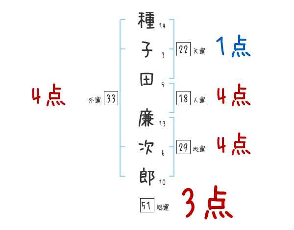種子田廉次郎さんの画数の鑑定結果