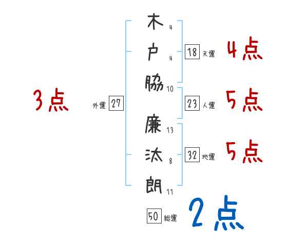 木戸脇廉汰朗さんの画数の鑑定結果