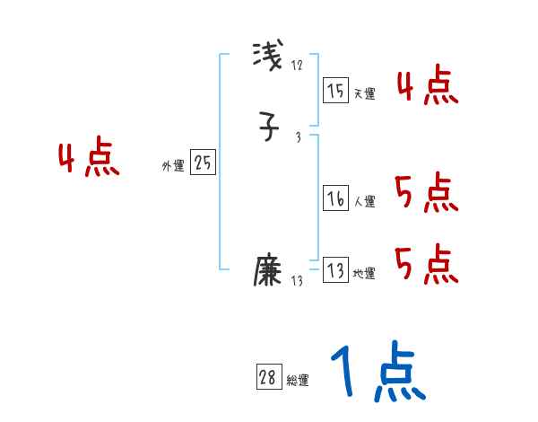 浅子廉さんの画数の鑑定結果