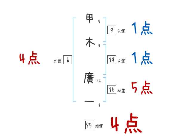 天運![]() | 甲木廣一さんの天運は9画の1つ星!消極的で才能を発揮することが苦手なことも。周りの意見に耳を傾けましょう。 家系が持つ宿命的な運勢を表します。祖先から受け継いだ苗字ですので自分の力が及びません。家柄を象徴します。 |