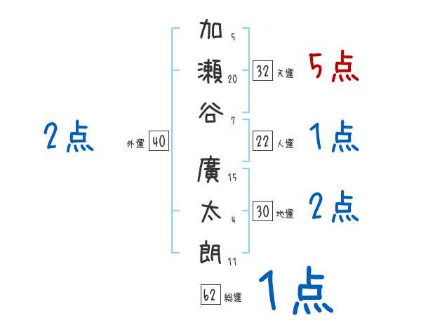 加瀬谷廣太朗さんの画数の鑑定結果