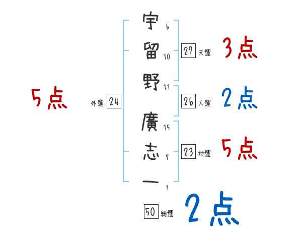 宇留野廣志一さんの画数の鑑定結果