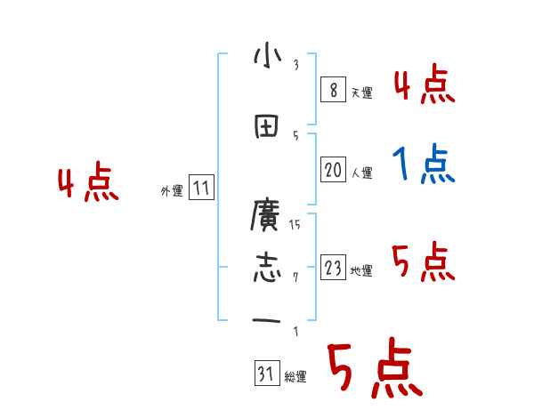 小田廣志一さんの画数の鑑定結果
