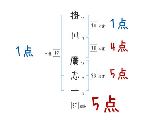 掛川廣志一さんの画数の鑑定結果