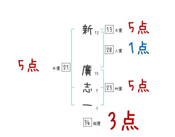 新廣志一さんの画数の鑑定結果