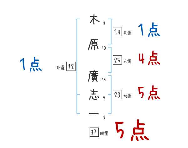 地運![]() | 木原廣志一さんの地運は23画の5つ星!想像力に優れ活力がある。一代で成功し名誉を手に入れる。 個性を表す基礎的な運勢です。性格形成や対人関係、行動力など家庭環境に影響されます。主に誕生してから20歳くらいまでの若年期の運勢を表します。 |