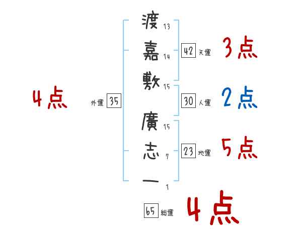 渡嘉敷廣志一さんの画数の鑑定結果