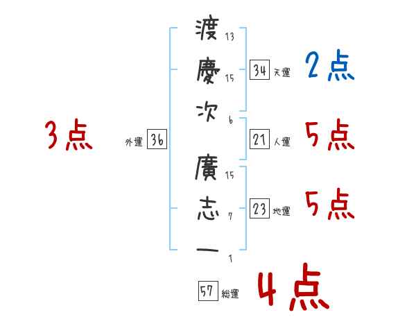 渡慶次廣志一さんの画数の鑑定結果
