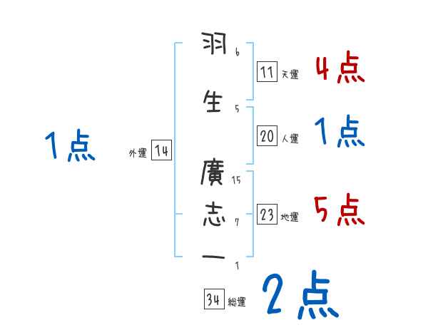 羽生廣志一さんの画数の鑑定結果