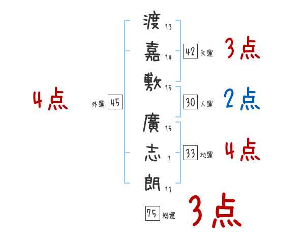 渡嘉敷廣志朗さんの画数の鑑定結果
