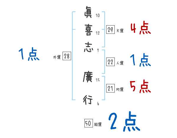 眞喜志廣行さんの画数の鑑定結果