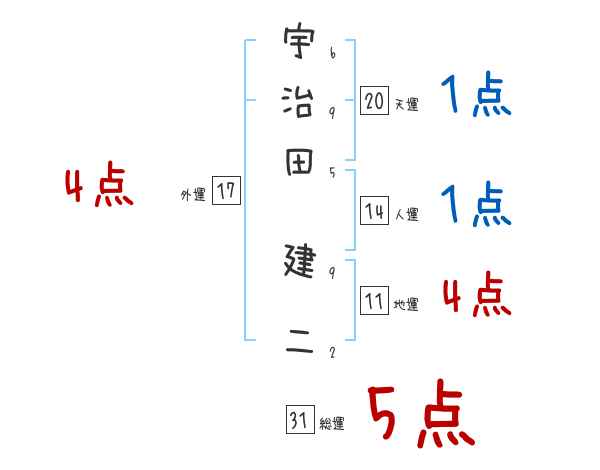宇治田建二さんの画数の鑑定結果