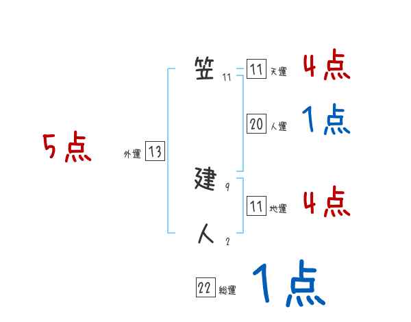 笠建人さんの画数の鑑定結果