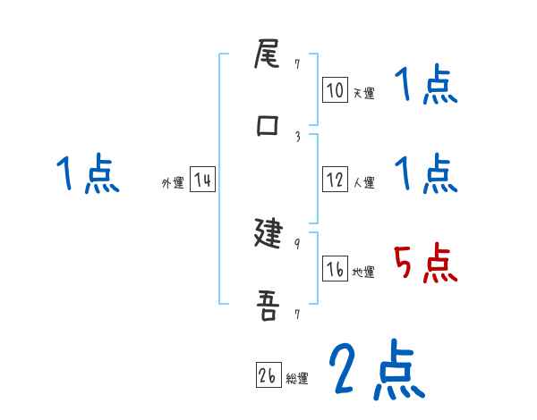 尾口建吾さんの画数の鑑定結果