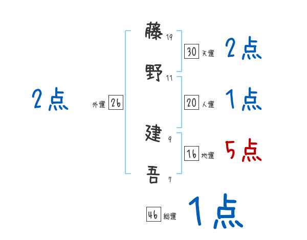 藤野建吾さんの画数の鑑定結果